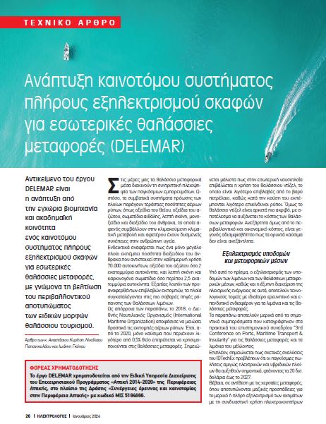 Τα αποτελέσματα του πρώτου σχεδιασμού του έργου DELEMAR παρουσιάστηκαν στο περιοδικό “Ηλεκτρολόγος” στο τεύχος του Ιανουαρίου 2024. Παρακάτω το σχετικό απόσπασμα: